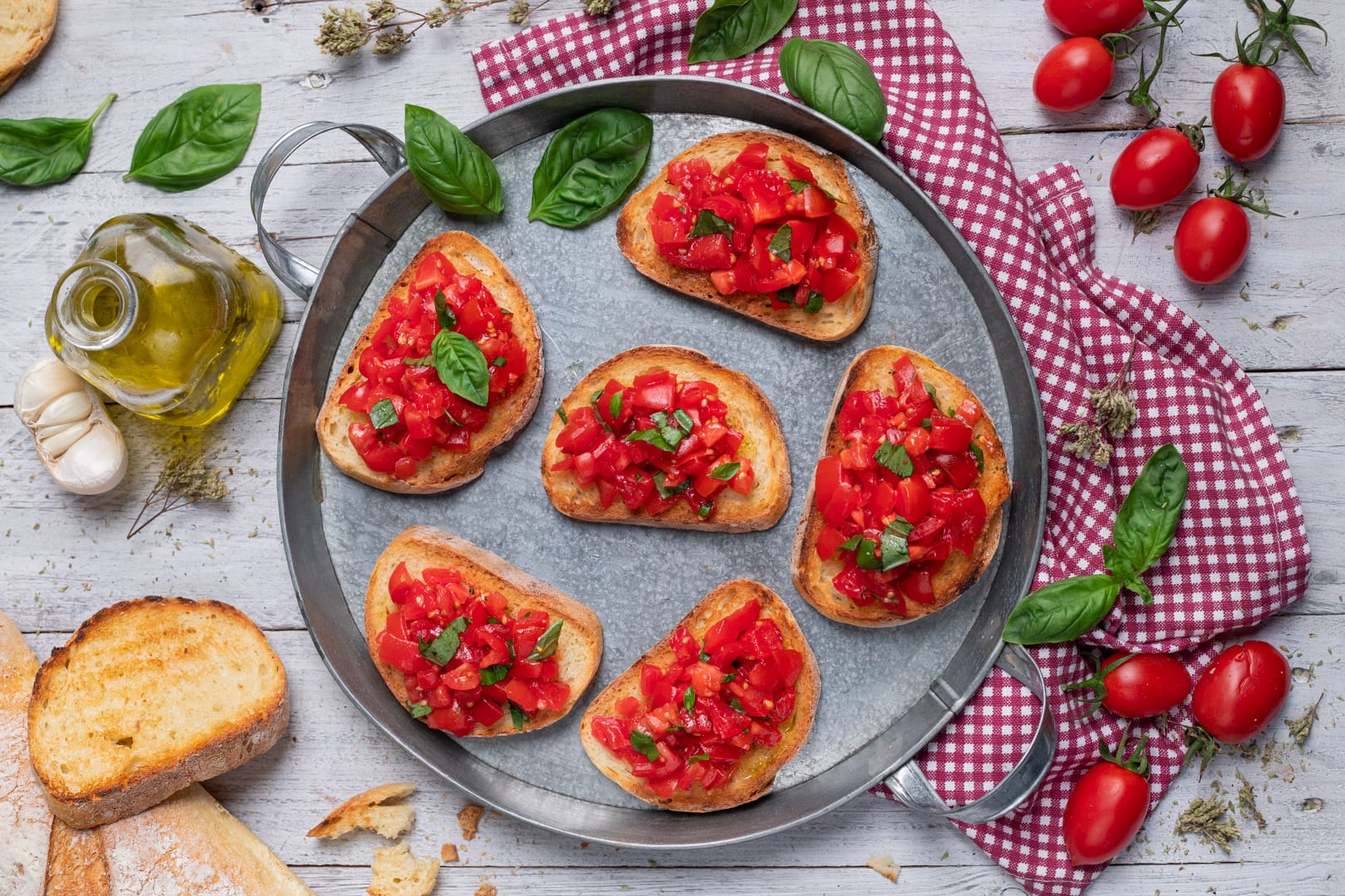 Grilled bread with tomato, basil & olive oil.