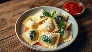 Homemade ravioli, sage butter.