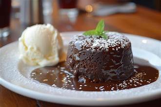 Warm chocolate cake with vanilla gelato.